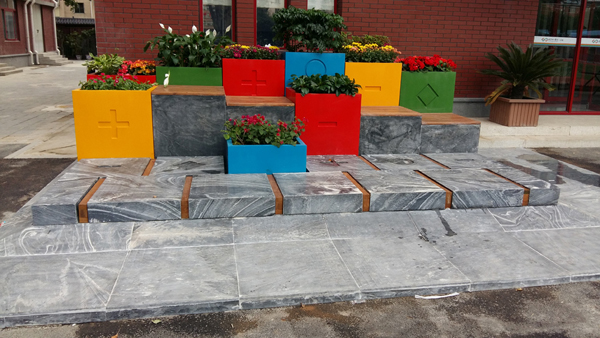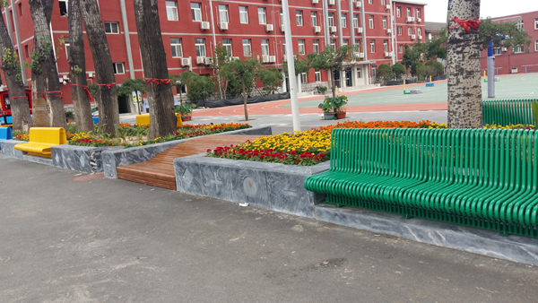 本公司為十一學校一分校校園文化施工項目于今日驗收竣工。用學校標志中的五種標準色做主色調(diào),生動活潑,符合學校特色,金屬座椅形式有趣新穎,吸引青少年觀看使用。讓校園靜區(qū)感覺更溫馨、現(xiàn)代。
