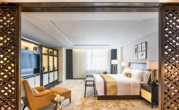 酒店158間客房,從標準客房到總統(tǒng)套房擁有多種寬敞房型。客房的材質(zhì)包括皮革、青銅、漆器、絲綢、石材,奠定了華麗的基調(diào)。在家具和紡織品上,我們也反復斟酌,結合中世紀現(xiàn)代設計的風格,營造出古典雅韻的氛圍。