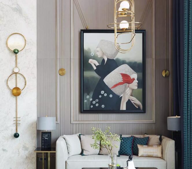 空間裝飾畫作加入了藝術(shù)化的處理手法,將經(jīng)典的藝術(shù)名畫以解構(gòu)主義的表現(xiàn)方式呈現(xiàn),對比鮮明,使空間富有層次和現(xiàn)代感。