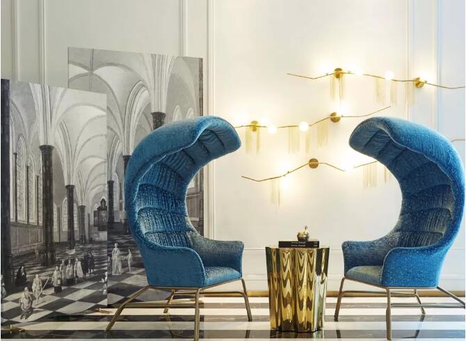 造型夸張的扶手椅所帶來強烈的視覺沖擊,搭配具有代表性建筑特征的藝術(shù)畫屏風,仿佛置身于戲劇場景中,將獨特的設(shè)計語言轉(zhuǎn)化為一種摩登藝術(shù)的代表性符號。