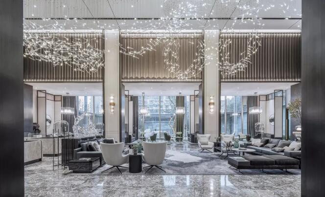 保利天悅銷售中心,位于成都城市核心南二環(huán)東湖區(qū)域,是保利“悅”系頂豪產(chǎn)品。樸悅承接該項(xiàng)目的銷售中心改造。面對項(xiàng)目服務(wù)特性,設(shè)計(jì)思考更多的是:如何區(qū)別于常規(guī)售樓處單純的展示,以塑造獨(dú)特的空間體驗(yàn),作為銷售道具去發(fā)揮其最大的營銷功能?因此,設(shè)計(jì)以腔調(diào)、個(gè)性、品質(zhì),取代過往售樓處熱鬧張揚(yáng)的場景營造,在目標(biāo)客戶群體參觀過程中介入沉浸式體驗(yàn),讓空間表達(dá)最終回歸到他們的心理感受。