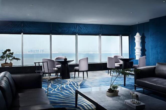 多功能廳內(nèi)靜謐的藍(lán)色大面積渲染墻和地面,無疑是一道靚麗的風(fēng)景線,純粹如巴勃羅·畢加索的名作《藍(lán)色房間》一般流光旖旎。