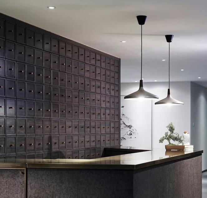 走近前臺(tái),帶有手工溫度的古銅材質(zhì)被用于中式藥柜臺(tái)面以彰顯高貴感。明暗交錯(cuò)的長(zhǎng)方形大理石磚,喚起小時(shí)候下雨過后地面將明將暗、半干未干的記憶。