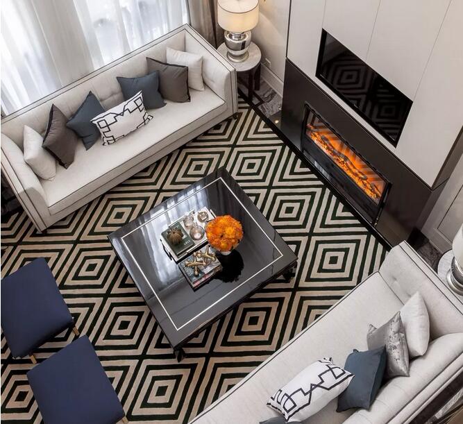 經(jīng)典的黑白配在軟裝布藝和皮革上盡情演繹,加以明快的孔雀藍(lán)及黃色花色和飾品做點(diǎn)綴,使整個(gè)空間層次豐富,個(gè)性鮮明。