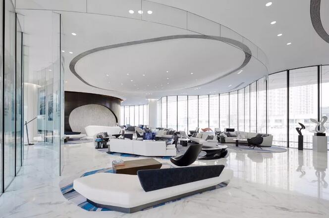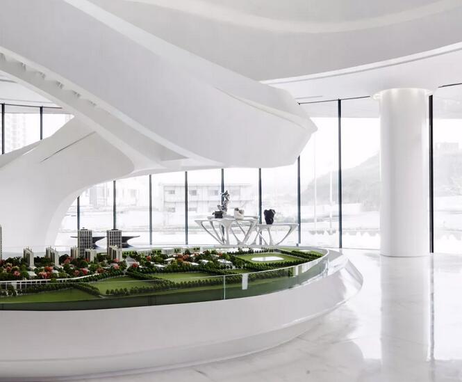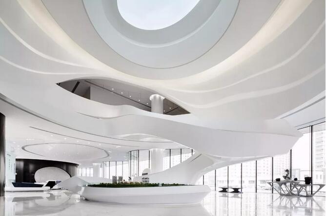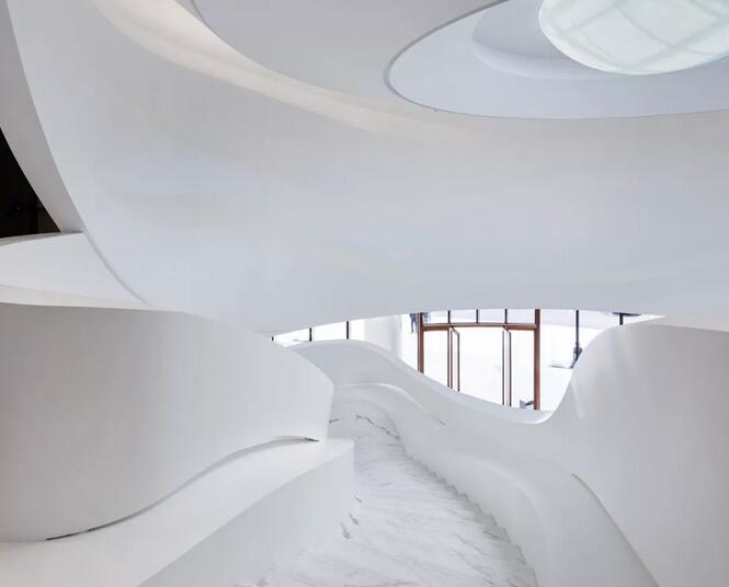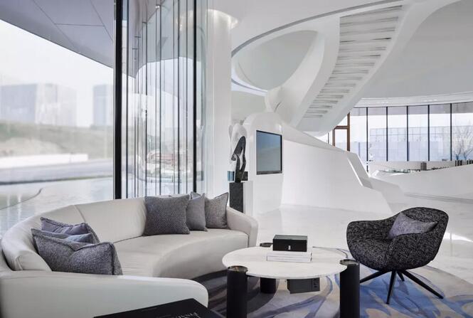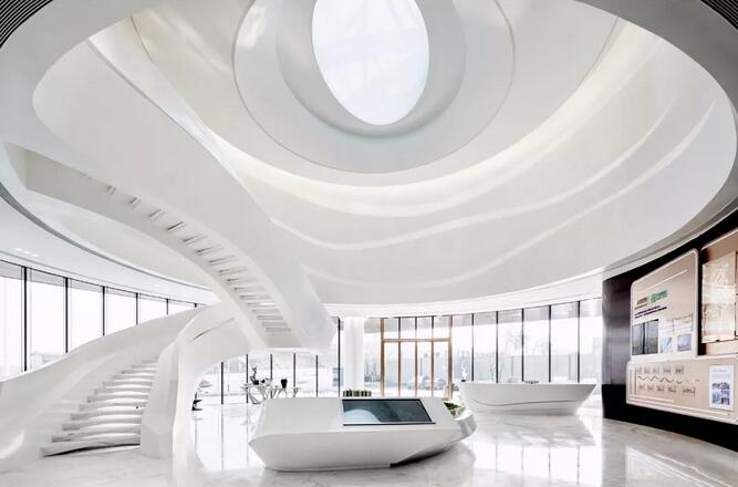 項(xiàng)目建筑本身極具造型感和藝術(shù)性的外形,以及室內(nèi)充滿未來(lái)感的造型,給實(shí)踐這種設(shè)計(jì)理念充分的前提和條件。