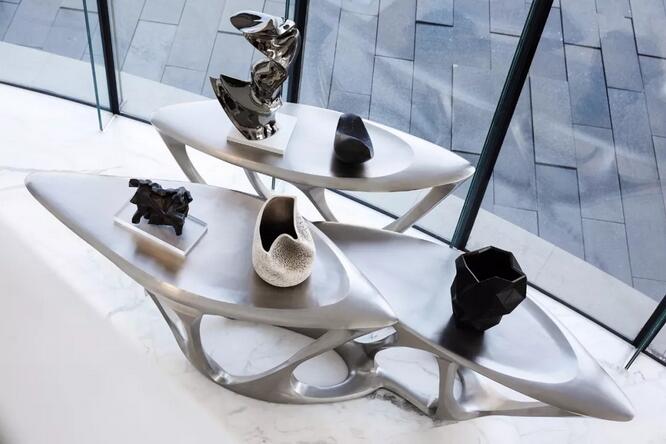 兩款來(lái)自Gilles Caffier的限量藝術(shù)裝置,純手工雕刻打磨,取自動(dòng)物的肌理,保留手的紋路,以陶結(jié)合不同材質(zhì),造型先鋒而有沖擊力,線條、材質(zhì)、色澤卻自然和諧地保持著某種平衡。