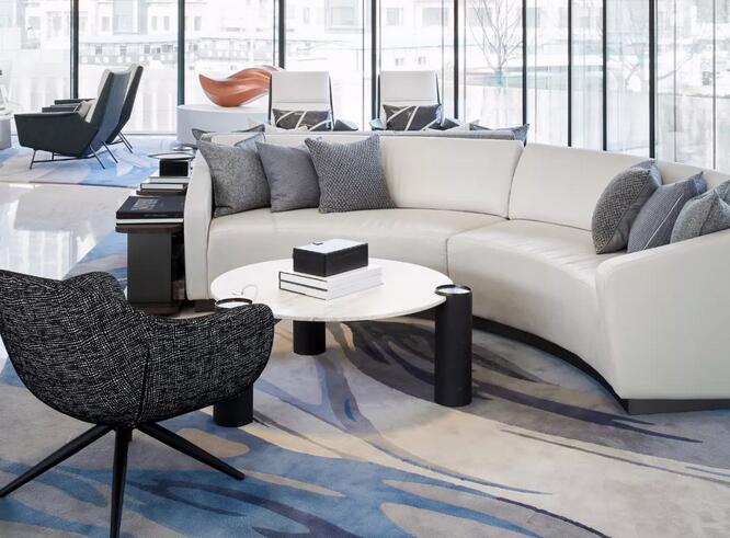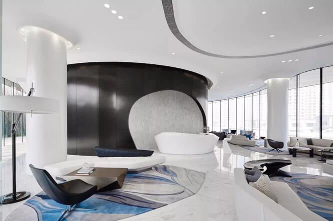 地毯的圖樣靈感來(lái)自扎哈·哈迪德的三維抽象畫,極具解構(gòu)思維的線條和色塊的組織變化,賦予空間獨(dú)特的個(gè)性力量。