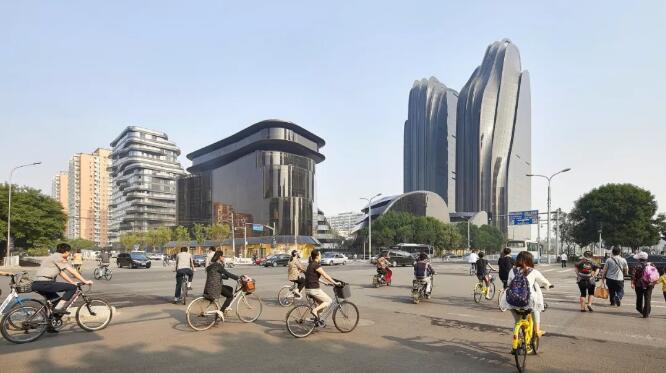 馬巖松和他帶領(lǐng)的MAD建筑事務(wù)所歷經(jīng)6年,近日完成了“墨色山水”——朝陽公園廣場及阿瑪尼公寓建筑群。地處北京朝陽公園的南面,建筑群總建筑面積約22萬平方米,由10座建筑組成,高低錯落,好像一幅展開的山水畫卷,又像是一組盆景。不同于紐約中央公園邊上那些強調(diào)邊界圍合感的現(xiàn)代建筑,北京這組極具未來感的建筑更加強調(diào)自然向城市的延伸和滲透,將城市中的人造物“自然化”,運用中國古典園林建筑中“借景”的辦法,突破了朝陽公園與城市的界線,使自然和人造景觀交相輝映,使人融情于景。