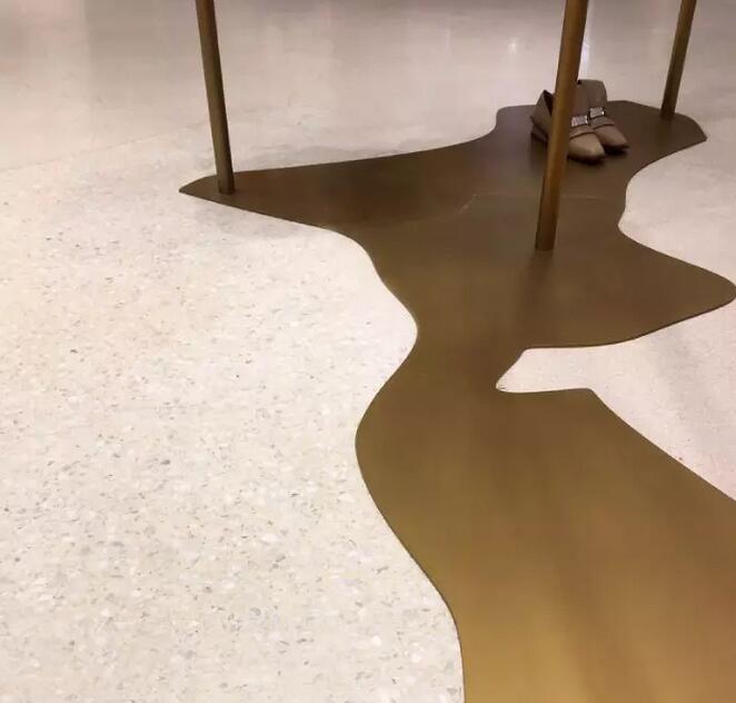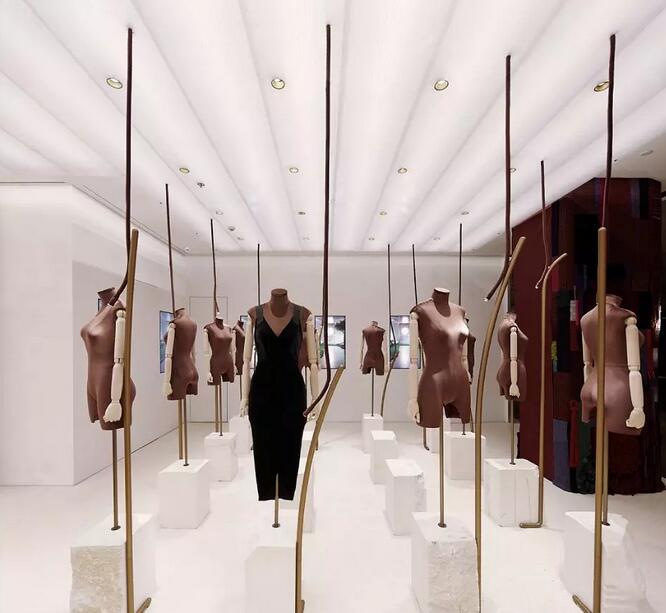 野營的中心是弧形條狀的領(lǐng)地,兩張8米長的首飾臺,用可旋轉(zhuǎn)座椅替代桌子的豎向支撐,北京專賣店設(shè)計這里是野營的活動中心。周圍著的是二三一組的獨立的金屬衣架,底部圖形可隨意拼接,北京專賣店設(shè)計模擬營地中大片葉子簇?fù)碓谝黄鸬妮喞斏详柟獍宓蹴斏系狞c光源的分布與地面水磨石的骨料變化范圍相對應(yīng),與衣架的組團相呼應(yīng),烘托出“領(lǐng)地“感。 北京專賣店設(shè)計入口大柱子上手工編織物來自和waa合作的一位藝術(shù)家之手,暗紅色調(diào)一直延續(xù)到更深處,化作泥濘的土地。