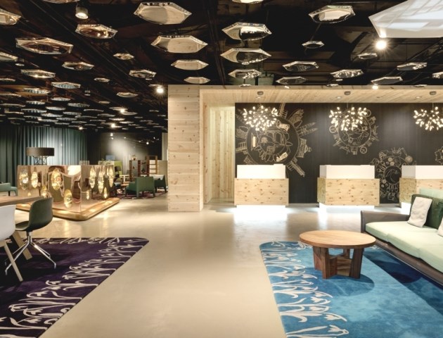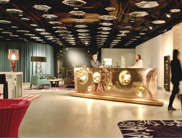 這間酒店的大廳是瑞士設計風格和傳統(tǒng)手工技藝的完美結合。這些有瑞士特點的“瑞士圈”被刻在瑞士松木上,盡管被放置在先進的入住程序模塊后面,依然引人注目。這種瑞士圈是由圖形和一種源自17世紀的瑞士切紙藝術符號構成的,設計師用這種略帶頑劣的形式將瑞士古老文明的歷史傳統(tǒng)與現(xiàn)代文明詩意化的融合在一起。