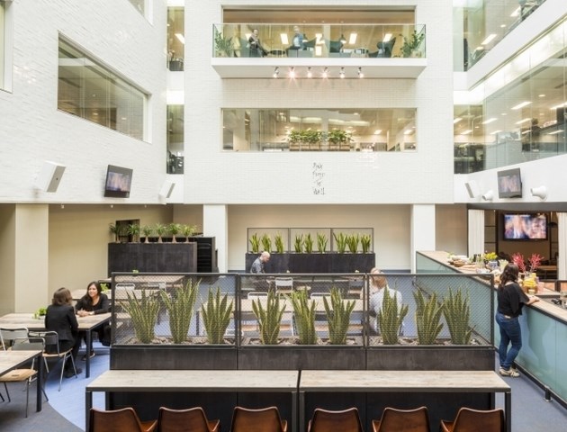 每一層樓都采用低層的照明設(shè)置、裸露的天花板、黑色的可回收木地板,還有黑色的窗戶框,周圍是一圈與眾不同的深綠色飾物。這間新辦公室不僅高端大氣,而且能夠吸引那些大牌的音樂藝術(shù)家前來錄音,這里真是太舒適了。