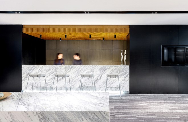 延續(xù)峻佳一貫在有限空間中實現(xiàn)功能復(fù)合的概念,在展廳與辦公室之間,根據(jù)人們身處其中的行為,峻佳設(shè)計了一個兼容咖啡/商務(wù)接待/智能移動辦工/休閑功能的區(qū)域。多功能的復(fù)合布局滿足了人們的使用需求,讓空間價值實現(xiàn)最大化。走廊、墻壁乃至藝術(shù)品的陳列,都變成設(shè)計的誘導(dǎo)者,引領(lǐng)來訪者的好奇心,直至抵達下一個情境。這是很難發(fā)現(xiàn)的小設(shè)定,也是設(shè)計師的心理暗示。
