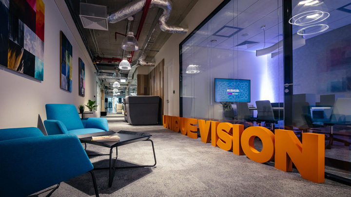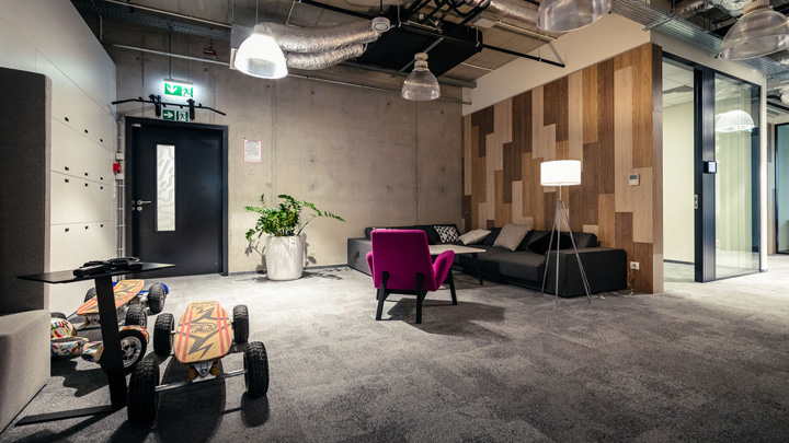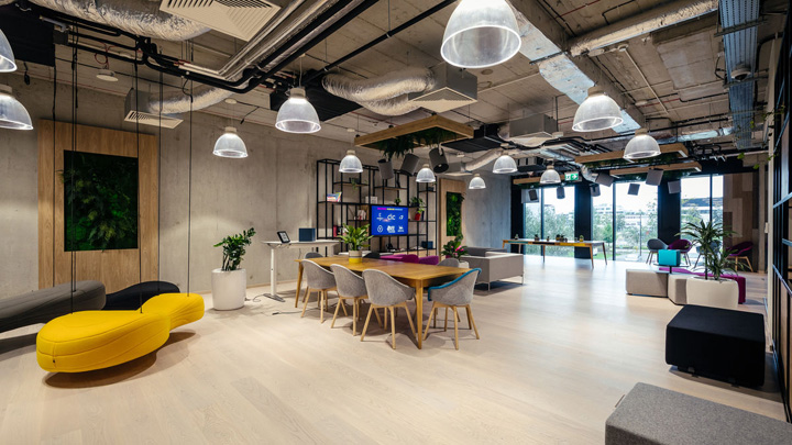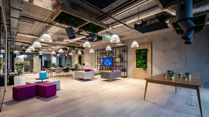 來自波蘭In Design設(shè)計(jì)團(tuán)隊(duì)的作品HUBHUB極好的詮釋了這樣的理念。一樓布局更為靈動(dòng)多元,這里以共享工位為主,配以會(huì)議室、咖啡吧、大型開放休閑空間。裸露的混凝土表皮配以大量溫暖的木飾面,塑造出一個(gè)溫暖的單色基調(diào)。通過時(shí)尚的家具配置和巧妙的綠植點(diǎn)綴創(chuàng)建一個(gè)靈動(dòng)多元、促進(jìn)交流分享的共享辦公空間。二樓以個(gè)人與共享的封閉辦公室為主,但隨處可見供休閑交流的公共空間。