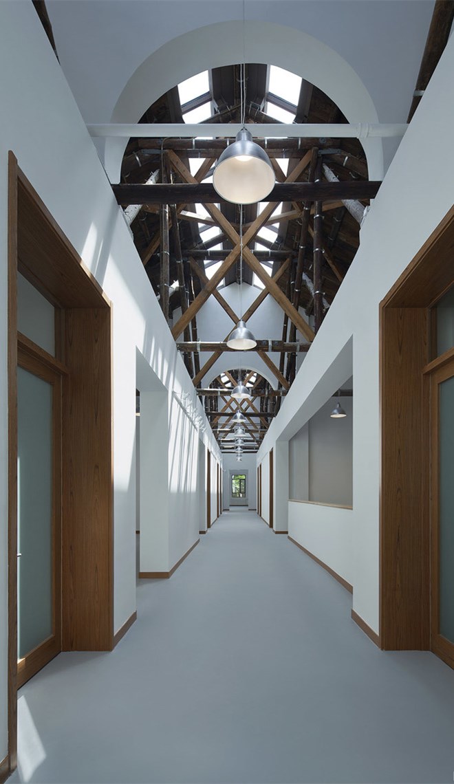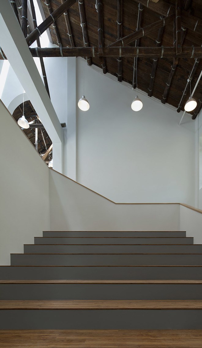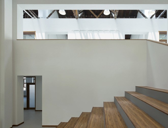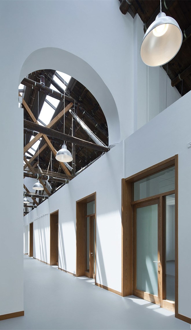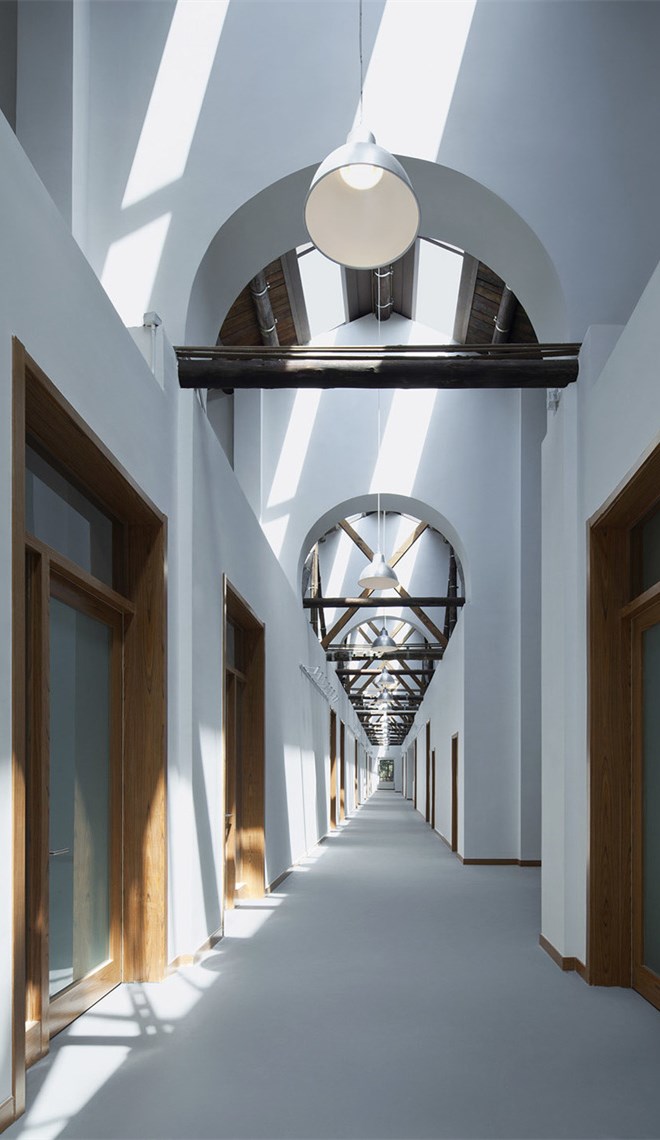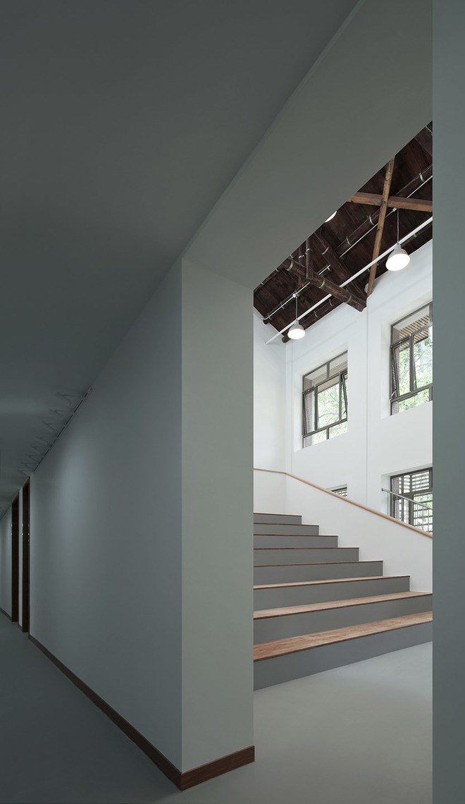 C+ Architects建筑設(shè)計事務(wù)所主持建筑師程艷春接到北京建筑大學(xué)的委托,對位于西城區(qū)展覽館路老校區(qū)的教學(xué)5號樓進(jìn)行空間改造設(shè)計。這個校園不僅是建筑師現(xiàn)在任教的場所,更是其本科5年間學(xué)習(xí)和生活的回憶之地,因此,有著不同尋常的意義。教學(xué)5號樓建于1956年,是一棟中西折衷風(fēng)格的建筑,其內(nèi)部空間比較簡單,中間一道狹長的走廊,走廊兩邊都是教室,在建筑兩端各有一個樓梯。