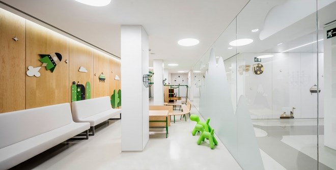 里面有專業(yè)的醫(yī)療團隊和溫馨的就診環(huán)境,不管是病人還是護理人員,都會在這里找到愉悅和舒心。為了達到這一目的,Toormix設計團隊以及合作的Plasencia Arquitectura施工團隊,將這個日常看護中心分為三個區(qū)域:等候區(qū)、用藥咨詢室、以及治療室。