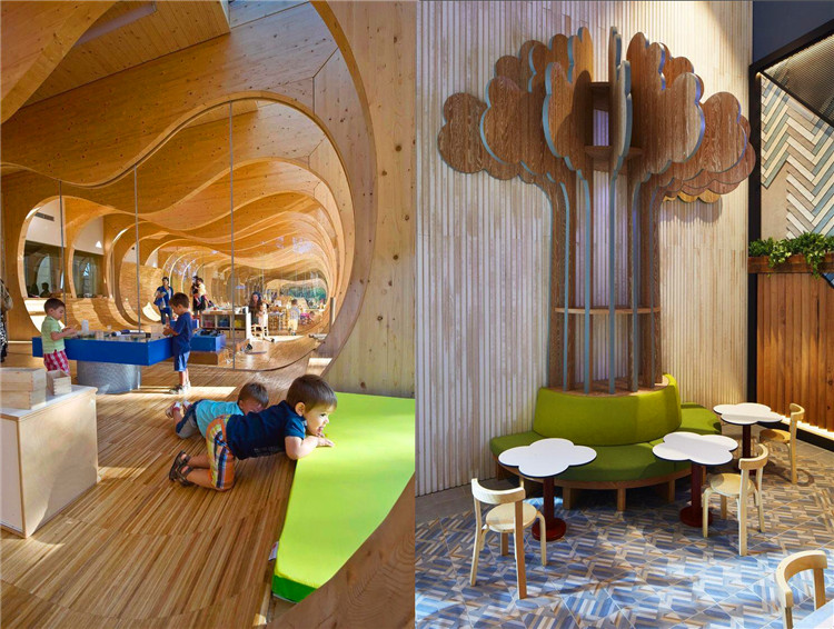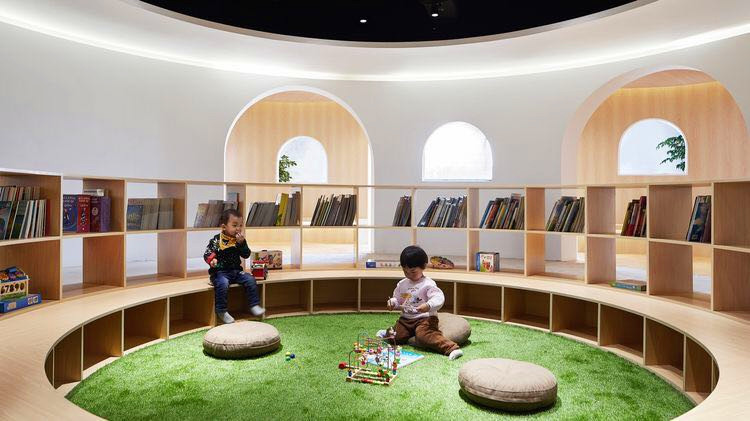利用包柱子設(shè)計(jì)了一個(gè)休息區(qū),給孩子增添了一個(gè)閱讀及休息的場(chǎng)所。