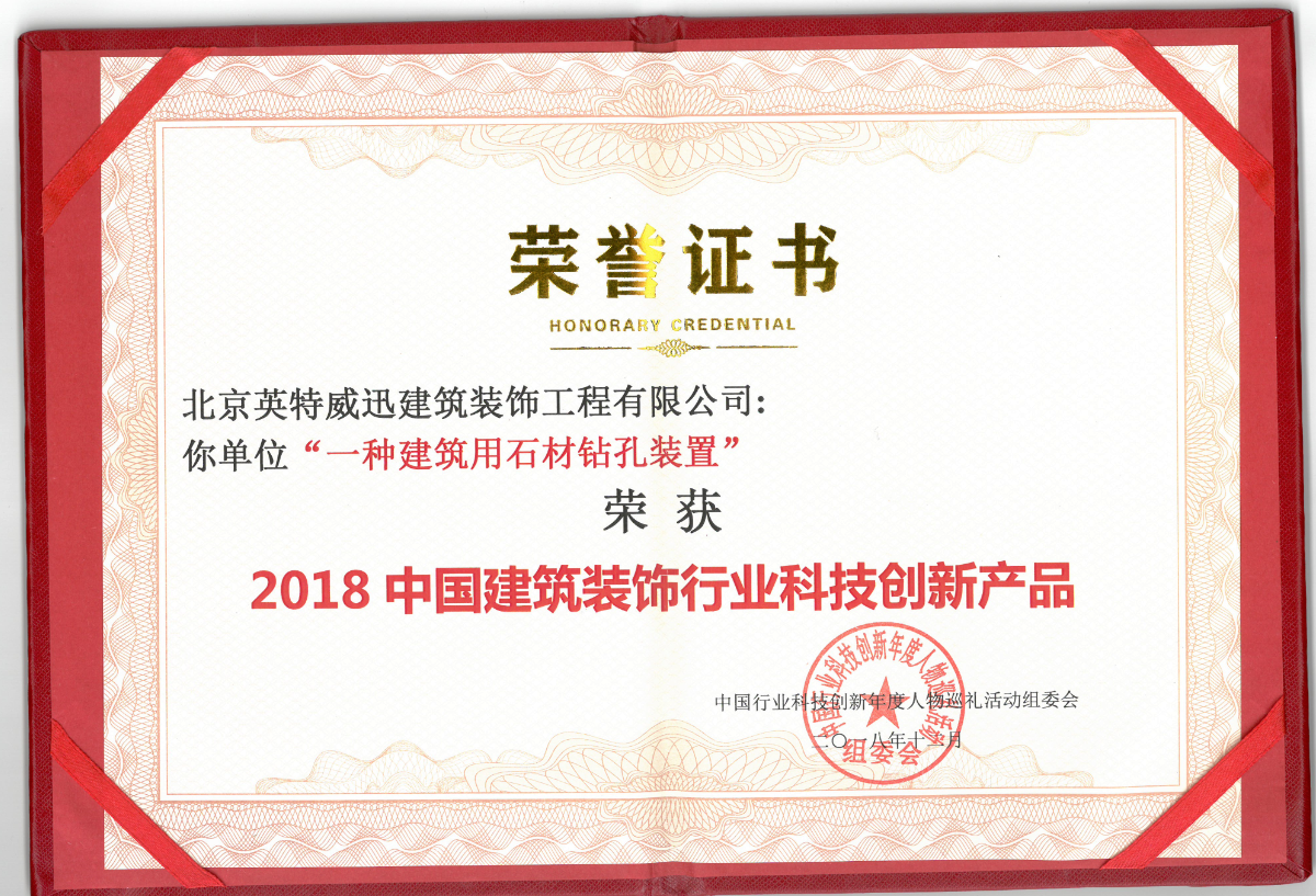 英特威迅公司專利榮獲建筑裝飾行業(yè)科技創(chuàng)新產(chǎn)品。