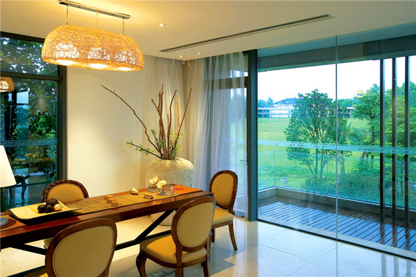 燈飾一般可用垂懸的吊燈,為了達(dá)到效果,吊燈不能安裝太高,在用膳者的視平線之上即可。長(zhǎng)方形的餐桌,則安裝兩盞吊燈或長(zhǎng)的橢圓形吊燈,吊燈要有光的明暗調(diào)節(jié)器與可升降功能,以便兼作其他工作用,餐廳光源宜采用暖色白熾燈,不宜用冷色熒不燈。因?yàn)椴穗戎v究色、香、味、形、若受到冷色光的照射,將直接影響菜肴的成色,影響人的食欲。