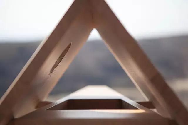 為了讓觀鳥愛好者可以更方便地欣賞到鳥兒們的全貌,雙人設(shè)計組合 ODDO Architects 借鑒了秀場的 T 臺設(shè)計,打造了一個可以讓小鳥們“走秀”的鳥屋。金字塔形的小屋內(nèi)設(shè)有一個飼料槽,一側(cè)的木墻上還配備了一扇圓形的小窗戶,供“模特”們一窺自己的“仰慕者”。