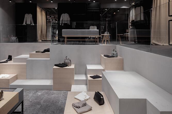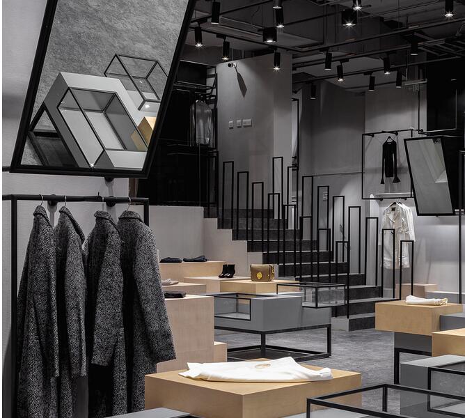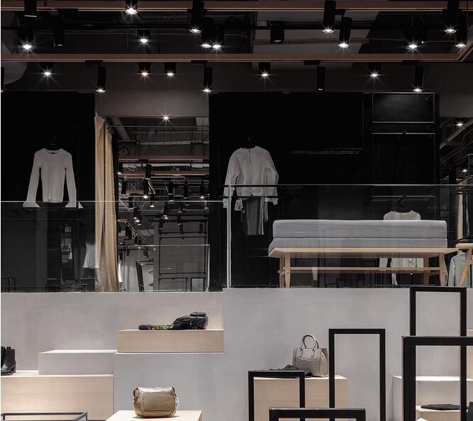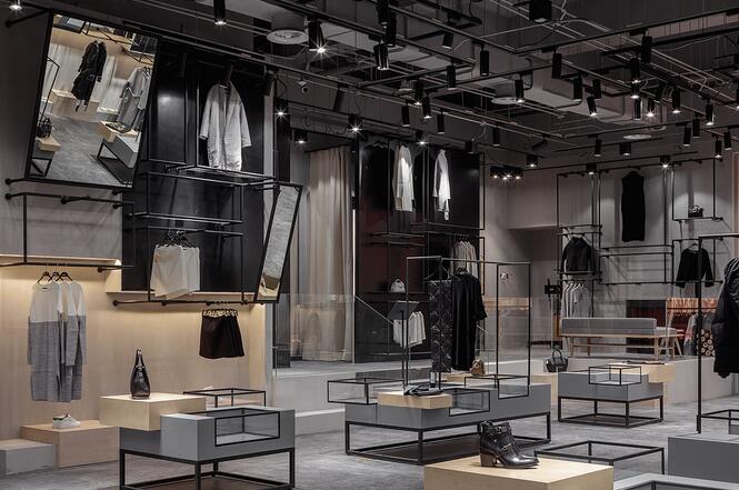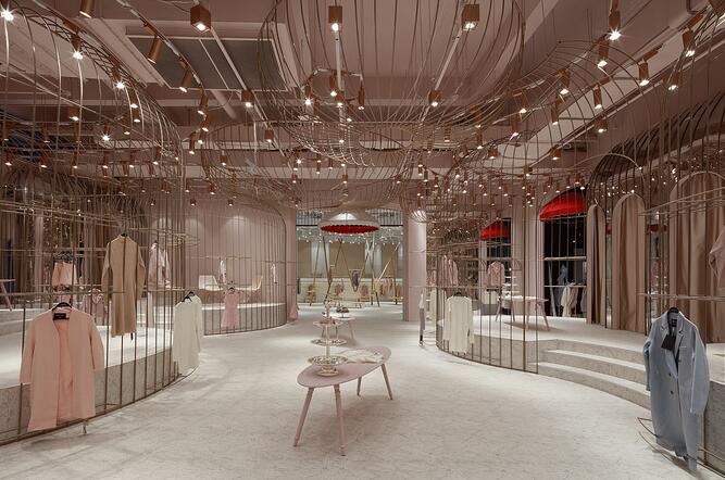 設(shè)計師整合了女裝品牌四大類型服裝背后的社會與文化含義通過四個空間的不同的設(shè)計手法來演繹了女裝背后的穿衣哲學(xué)并且通過多種陳列的可能性創(chuàng)造了全新的購買體驗感。
