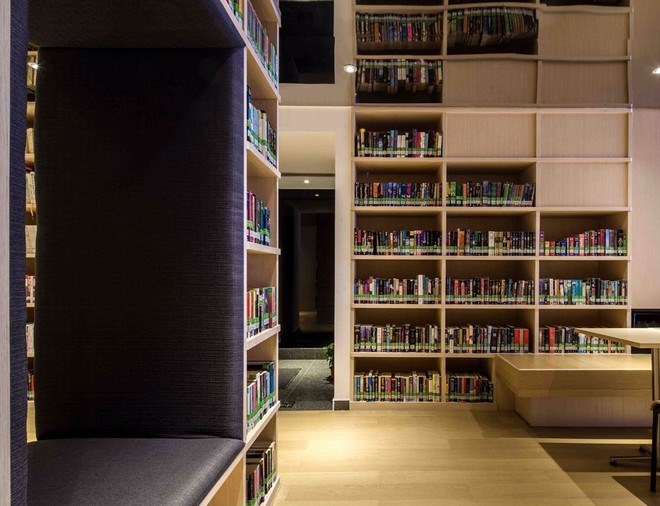 在一個小地方,喝一杯咖啡,在這里,一口氣優(yōu)雅穩(wěn)重。奢華的茶香在空氣中混合,給觀眾一個低音標(biāo)志,首先壓制然后發(fā)展-在光線吹來的暖色調(diào)面前,這本書即將播放高潮的旋律。書吧是核心。溫暖明亮的木色將人環(huán)抱,眼望四周,又好似樹立著無數(shù)層書架,層巒疊嶂,高聳入云。