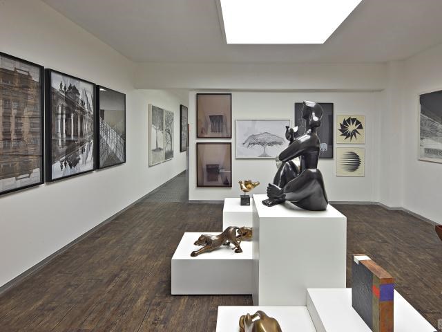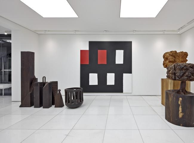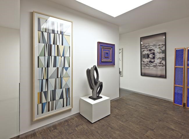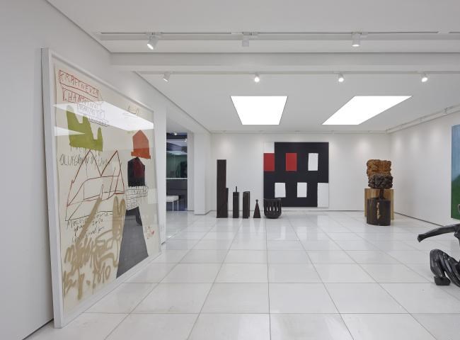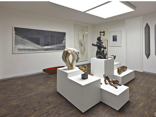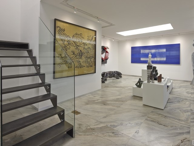 圍繞以上目的,設(shè)計(jì)師們?cè)O(shè)置了一堵干砌墻放在門邊的空道上,墻面對(duì)著門放置,并貼了德國(guó)艾弗里品牌的貼紙?jiān)趬ι厦?。另外,大小形狀不一的白色模塊,被用來(lái)擺放那些小型的雕塑,如果喜歡,人們并且可以將一整套大小不同的雕塑分別放置在一起。