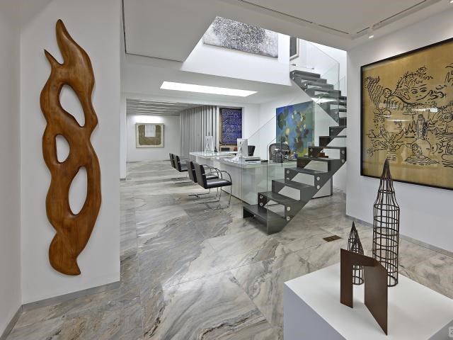 除此之外,所有的藝術(shù)作品和雕塑品都可以交給辦公室保管。這里所有地方都做了防雷電處理,從法國(guó)巴力天花板到Kiron燈具,全部都是防雷電的。